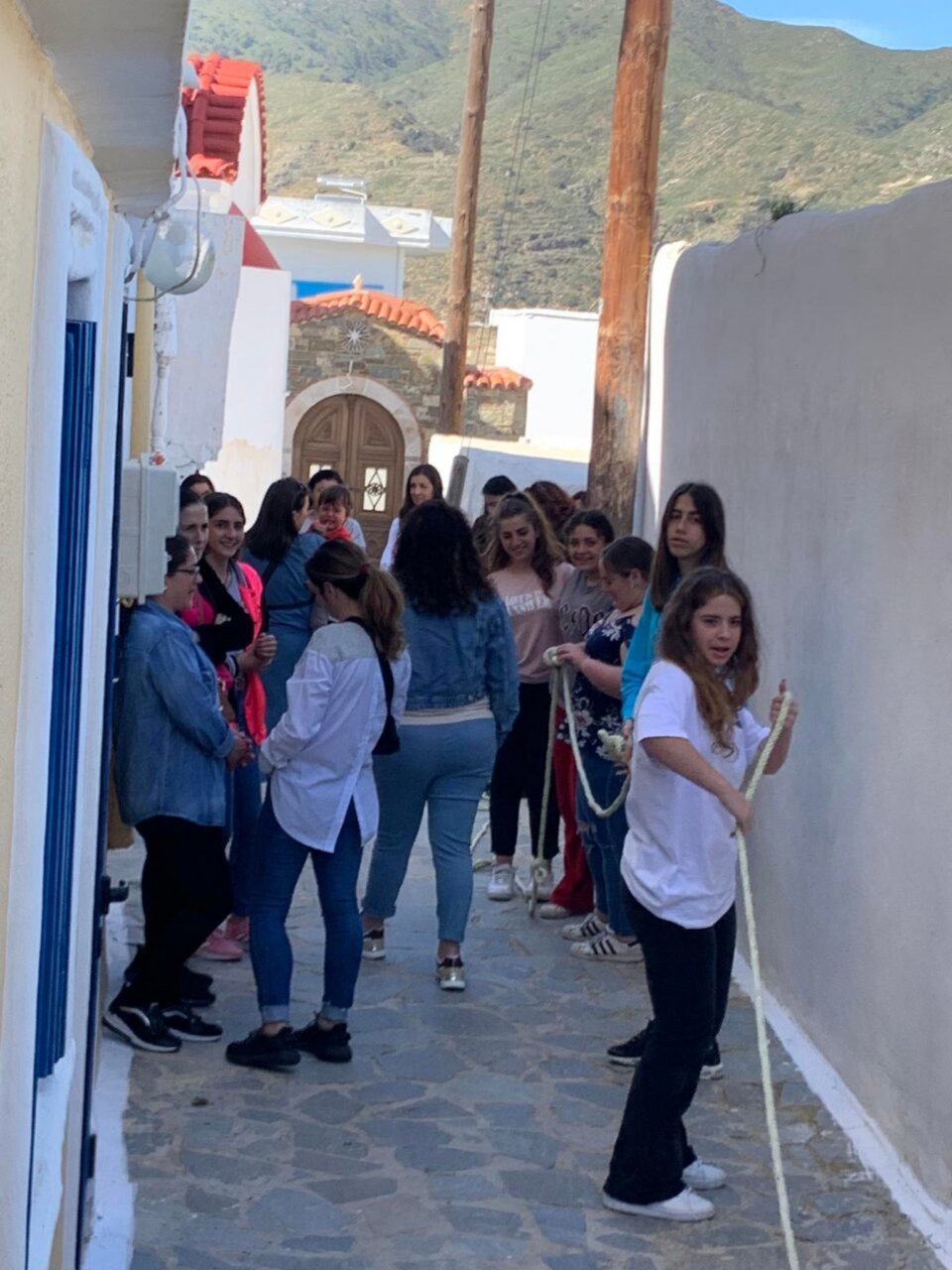 Το στενό στον Χριστό, απ' τον καφενέ της Μαριγώς ως του Σακέλλη την αυλή, γεμίζει κόσμο, κάθε ηλικίας και φύλου. Παιδάκια 4-5 χρόνων, γριές και γέροι που ξεπερνούν τα ενενήντα, συγκεντρώνονται για να αναλάβει καθένας τον ρόλο του πρωταγωνιστή ή του κομπάρσου.