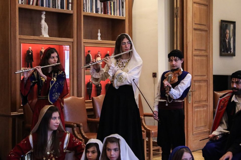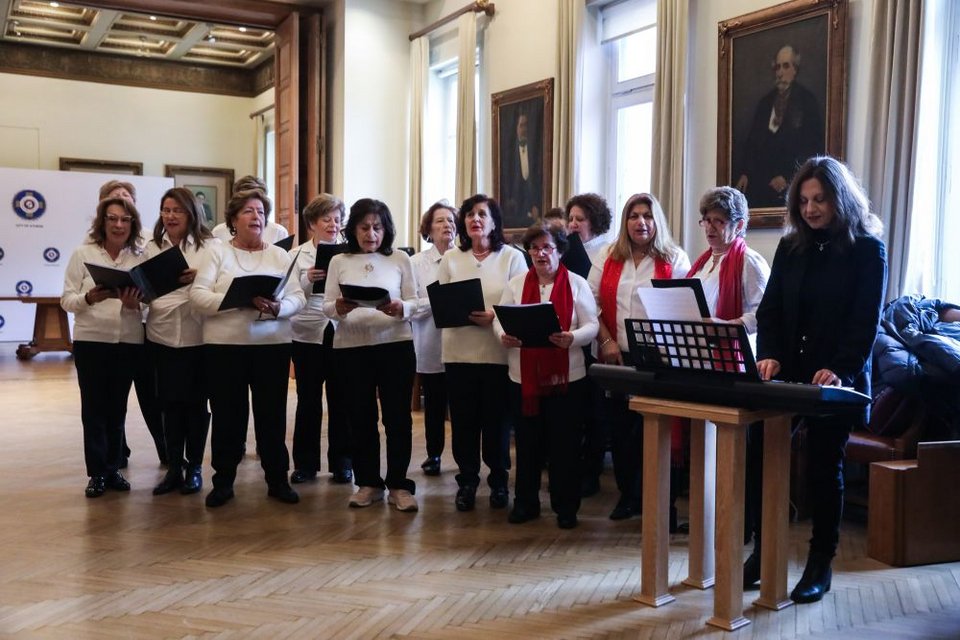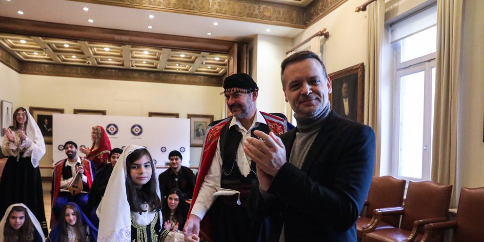 Πλημμύρισε από πρωτοχρονιάτικες μελωδίες, αλλά και παραδοσιακούς χορούς σήμερα το Δημαρχείο της Αθήνας με τον Χάρη Δούκα.