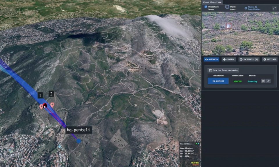 Κατά τις ίδιες πληροφορίες, αυτό θα γίνει με συστήματα που έχουν αναπτυχθεί από ελληνικές εταιρείες -το ΑΙ εντοπίζει εστίες καπνού- και στέλνουν αυτοματοποιημένες ενημερώσεις στην Πυροσβεστική με σημείο γεωεντοπισμού.