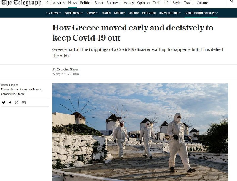 «Στην Ελλάδα υπήρχαν όλες οι παγίδες μιας αναμενόμενης καταστροφής της Covid-19: μια δεκαετής χρηματοοικονομική κρίση είχε αποδυναμώσει το σύστημα υγειονομικής περίθαλψης της χώρας, η πολιτική αστάθεια και η διαφθορά επικρατούσαν, ενώ έχει τον δεύτερο γηραιότερο πληθυσμό στην ΕΕ. Για αυτούς τους λόγους πολλοί ειδικοί περίμεναν το αποτέλεσμα [της πανδημίας] στην Ελλάδα να αντικατοπτρίζει εκείνο της Ισπανίας ή της Ιταλίας, όμως κατάφερε να αψηφήσει τις πιθανότητες», αναφέρει το δημοσίευμα της Telegraph.