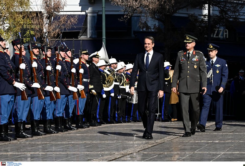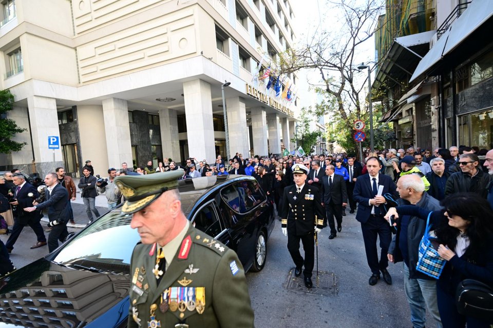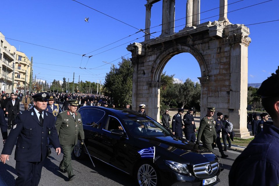 Τιμές στον εκλιπόντα απέδωσαν αγήματα από τα τρία Σώματα των Ενόπλων Δυνάμεων.
