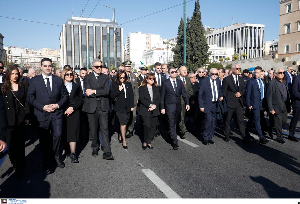 Από τη ΝΔ παρέστησαν οι υπουργοί Άδωνις Γεωργιάδης, Μιχάλης Χρυσοχοΐδης, Νίκη Κεραμέως, Κωστής Χατζηδάκης, Τάκης Θεοδωρικάκος και Λίνα Μενδώνη, Γιώργος Φλωρίδης.
