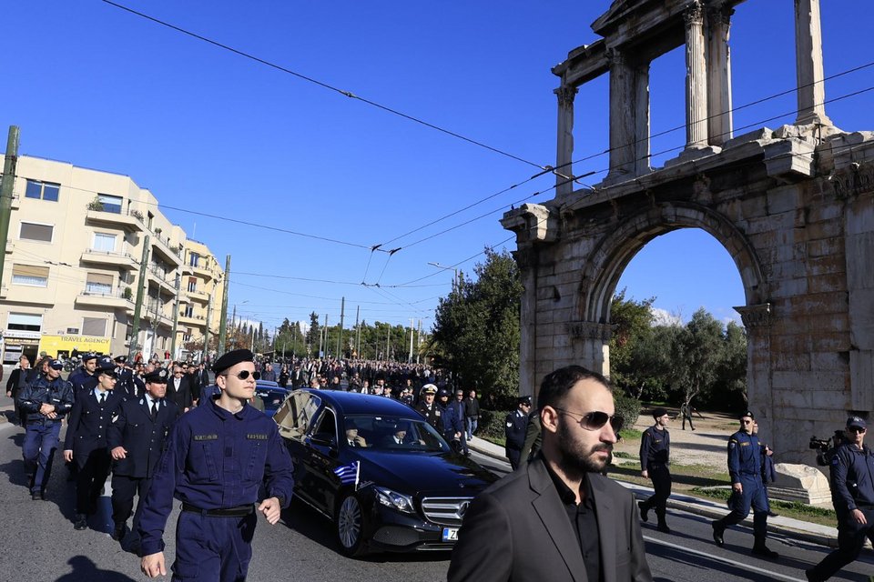 Μετά την τελετή στη Μητρόπολη, η πομπή κατευθύνθηκε πεζή προς το Α' Νεκροταφείο Αθηνών για το τελευταίο κατευόδιο. Διένυσε τη Μητροπόλεως, πέρασε από τη «Μεγάλη Βρεταννία», έκανε μια στάση στο δεύτερο σπίτι του Κώστα Σημίτη, στη Βουλή και στο Μνημείο του Άγνωστου Στρατιώτη, συνέχισε στην οδό Αμαλίας, έφθασε στους Στύλους του Ολυμπίου Διός και μετά συνέχισε στην οδό Αναπαύσεως.