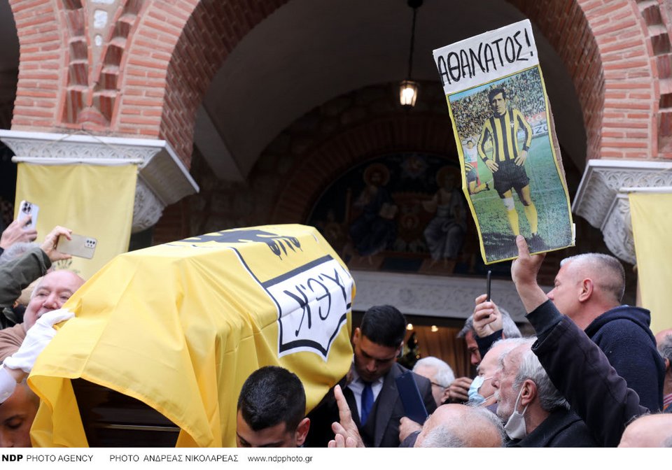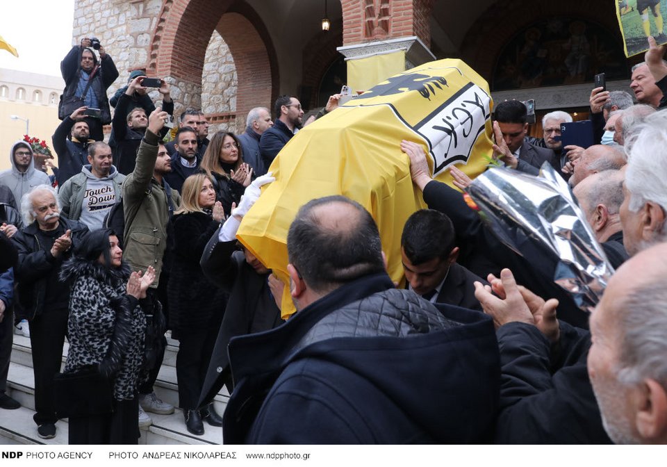 Αυτή αυτή την ώρα γίνεται η εξόδιος ακολουθία και θα ακολουθήσει η ταφή στις 16:30 στο Δημοτικό Κοιμητήριο Μαρκοπούλου Μεσογαίας. Την κηδεία έχει αναλάβει η ΠΑΕ ΑΕΚ.