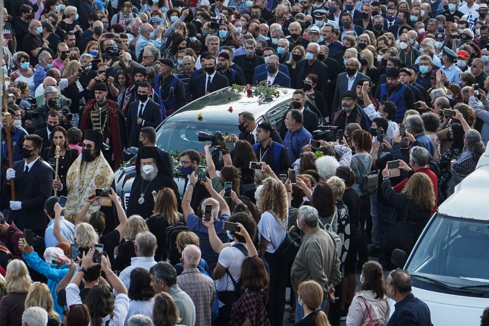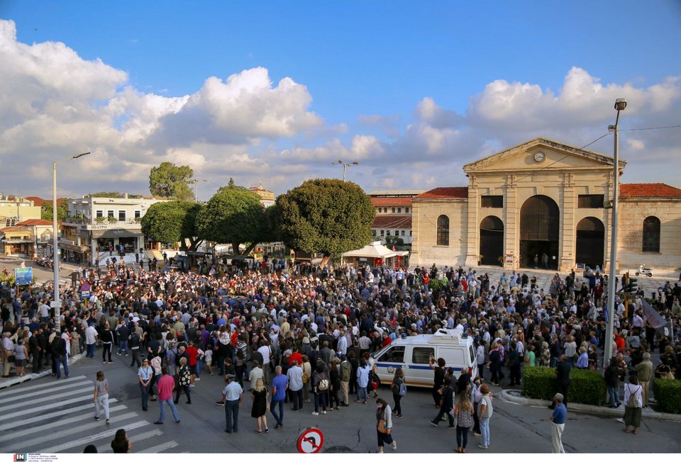 Τη στιγμή που η σορός έφτασε στον ναό, υπό τους ήχους της Φιλαρμονικής του δήμου, οι συγκεντρωμένοι πολίτες ξέσπασαν σε χειροκροτήματα και φώναζαν «αθάνατος».