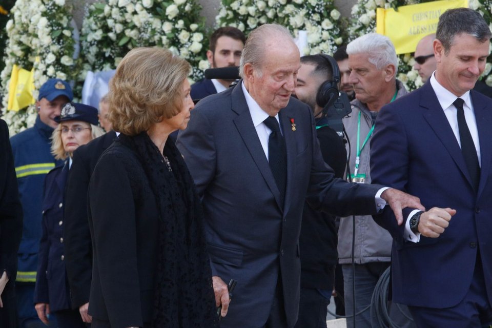 Πρώτοι έφθασαν η βασιλομήτωρ της Ισπανίας, Σοφία, με τον Χουάν Κάρλος και τις δύο κόρες τους, πριγκίπισσες Ελενα και Κριστίνα. Μαζί και τα εγγόνια τους από τις δύο κόρες τους και η αδελφή του Κωνσταντίνου, Ειρήνη. Το νυν βασιλικό ζεύγος της Ισπανίας Φελίπε και Λετίθια έφθασαν χωριστά και αργότερα.