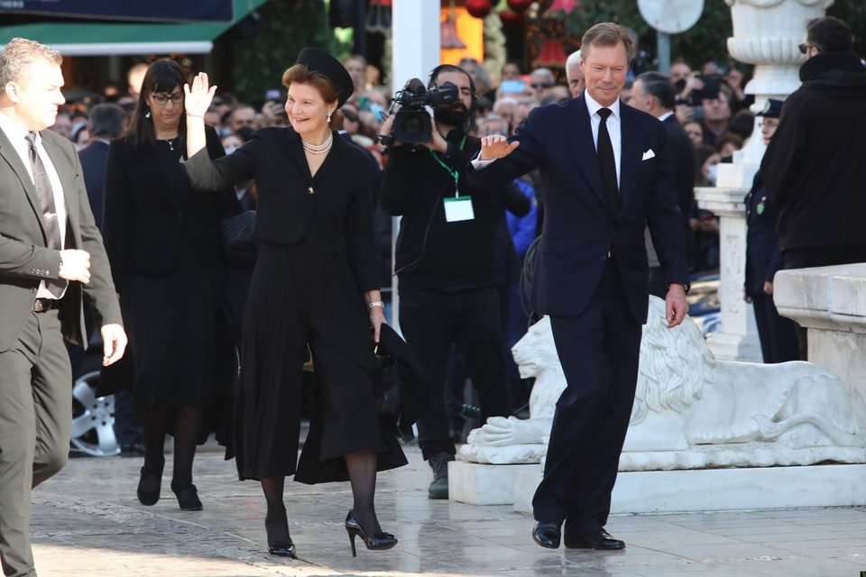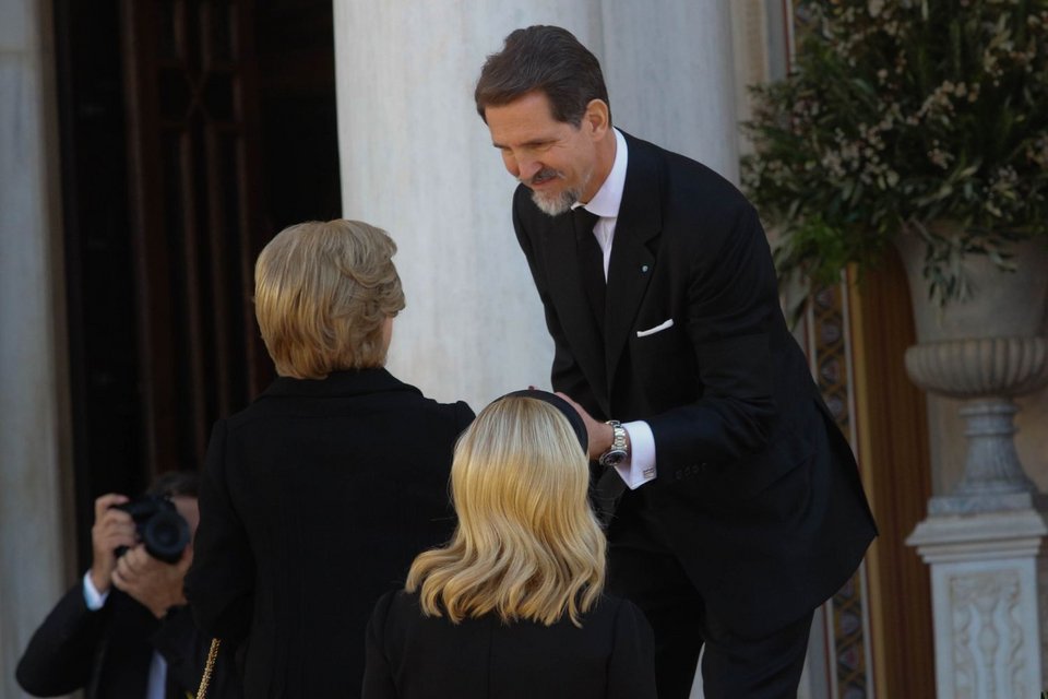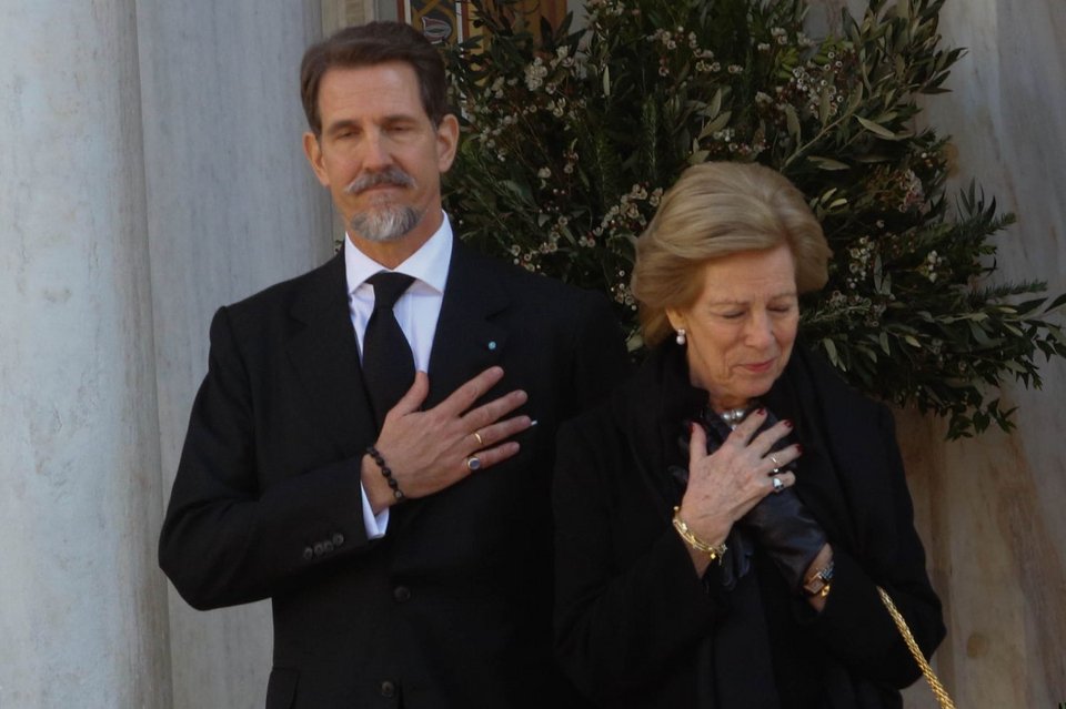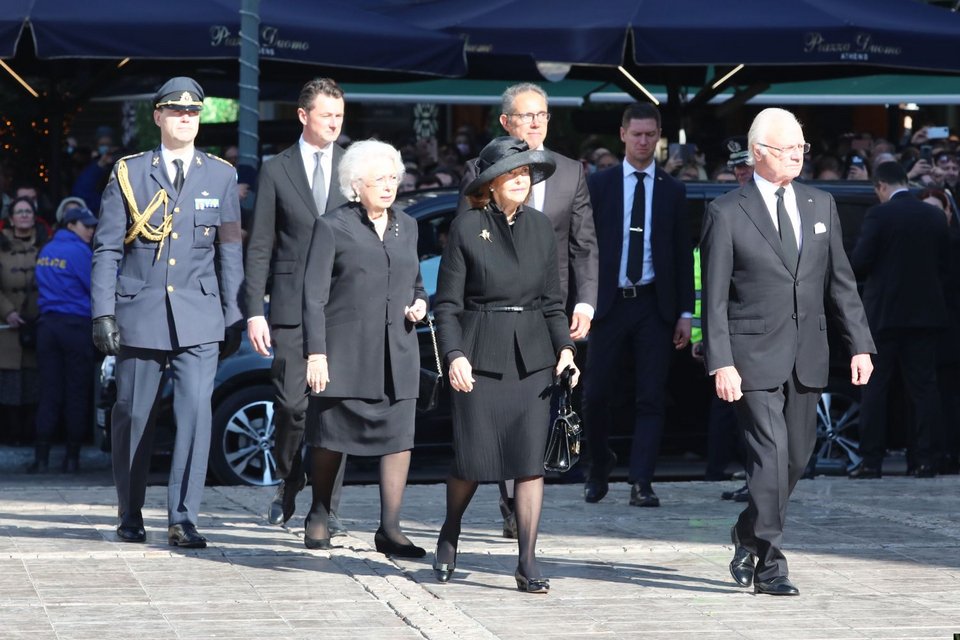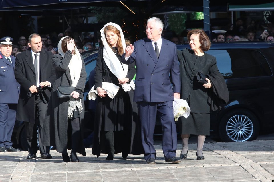 Ακολούθησαν τα παιδιά του Παύλου και τελευταία έφθασε η χήρα του τέως βασιλιά Κωνσταντίνου, Αννα-Μαρία, συνοδευόμενη από τη νύφη της Μαρί Σαντάλ.