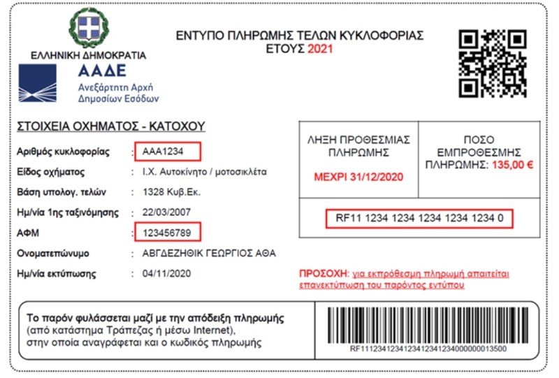 Τα «ραβασάκια» για τα τέλη κυκλοφορίας 2021 έχουν ήδη αναρτηθεί στην ειδική ενότητα της ΑΑΔΕ.