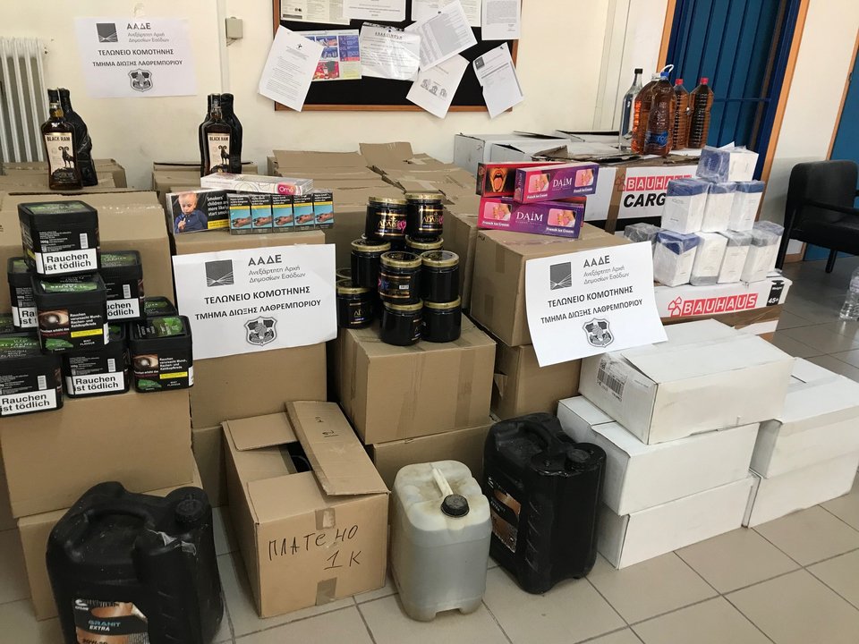 - υπάλληλοι του Τελωνείου Κομοτηνής ανακάλυψαν και κατέσχεσαν ως αντικείμενα λαθρεμπορίας τα παρακάτω προϊόντα: