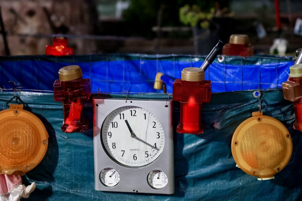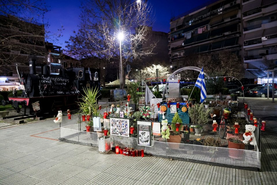 Λίγα 24ωρα πριν από τη μαύρη επέτειο των τριών χρόνων από το τραγικό δυστύχημα στα Τέμπη, κόσμος αφήνει λουλούδια και αναμνηστικά στο μνημείο των θυμάτων, στην πλατεία ΟΣΕ της Λάρισας.