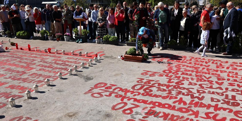 Συγγενείς των θυμάτων των Τεμπών και πολίτες βρέθηκαν το πρωί της Τρίτης μπροστά από το μνημείο του Αγνώστου Στρατιώτη.