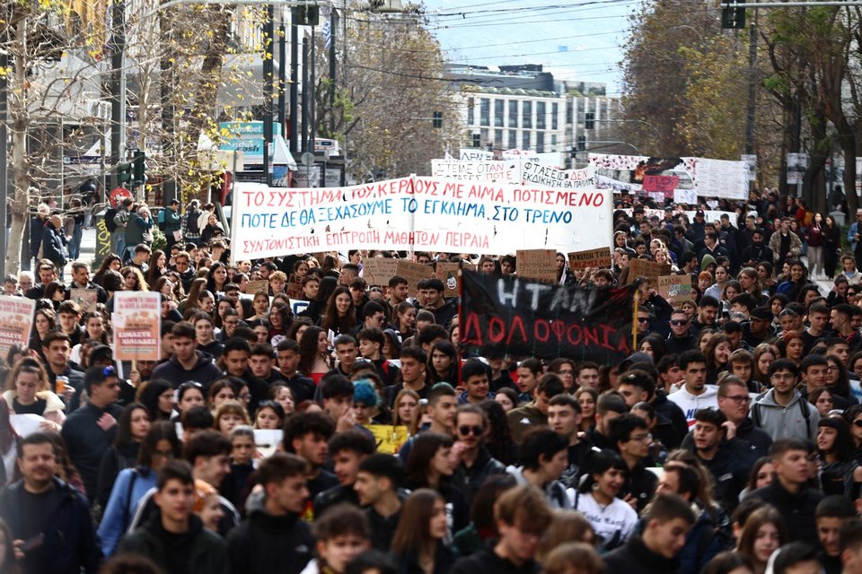 Στα Προπύλαια βρίσκονται μαθητές, μέλη φοιτητικών οργανώσεων και καθηγητές όπου θα πραγματοποιούν συγκέντρωση και πορεία με αφορμή τη συμπλήρωση τριών ετών από το πολύνεκρο σιδηροδρομικό δυστύχημα στα Τέμπη.