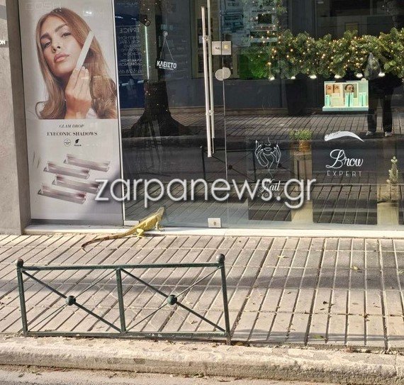 Το τεράστιο ιγκουάνα εντοπίστηκε στην οδό Μπουνιαλή στο κέντρο της πόλης. Όπως φαίνεται στο βίντεο, το ερπετό μάλιστα έδειξε προτίμηση προς τις βιτρίνες που είναι ήδη στολισμένες για τα Χριστούγεννα.