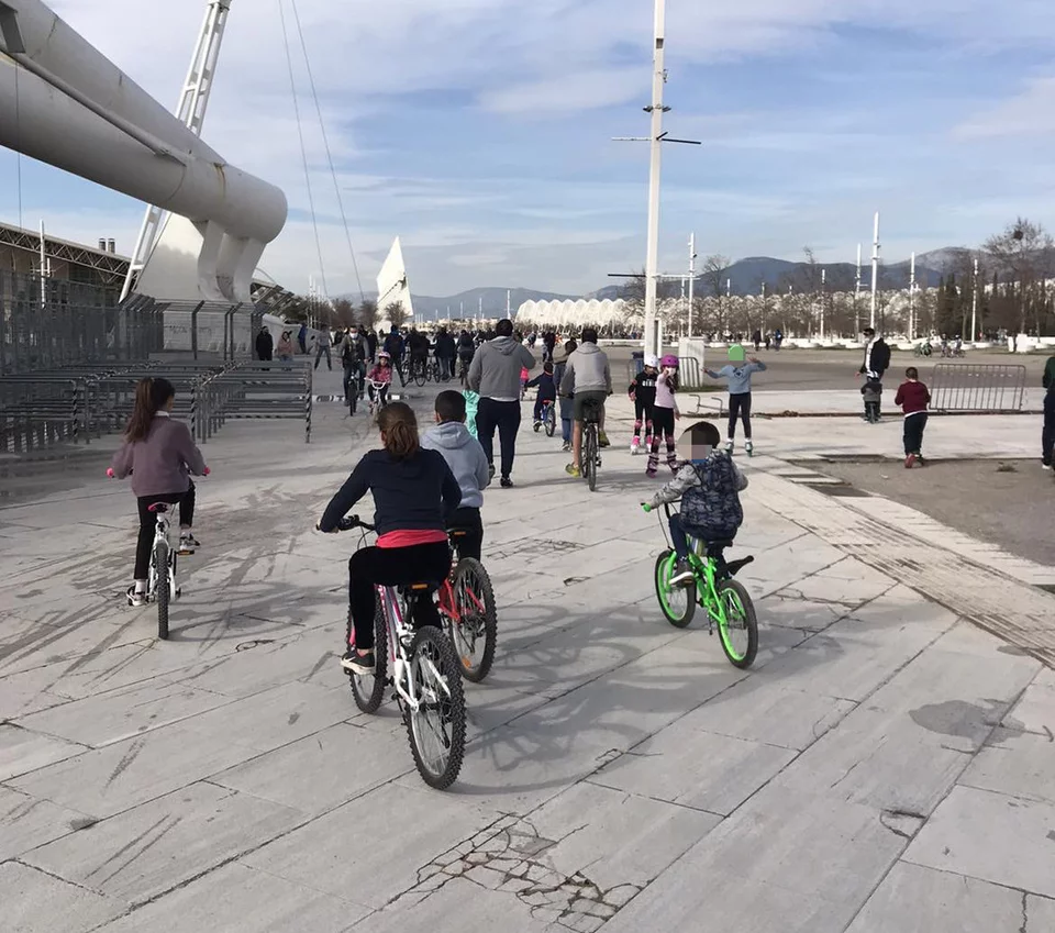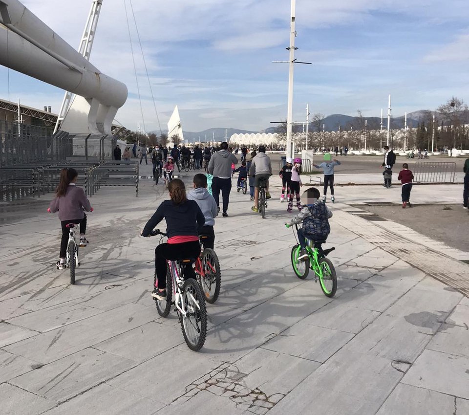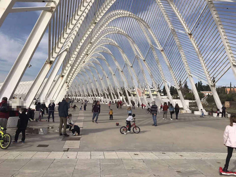 Γονείς με τα παιδιά τους, ζευγάρια και παρέες φίλων με σύμμαχο τον καλό καιρό αποφάσισαν να βγουν για βόλτα στους χώρους έξω από το ΟΑΚΑ, με αποτέλεσμα να δημιουργηθεί συνωστισμός.