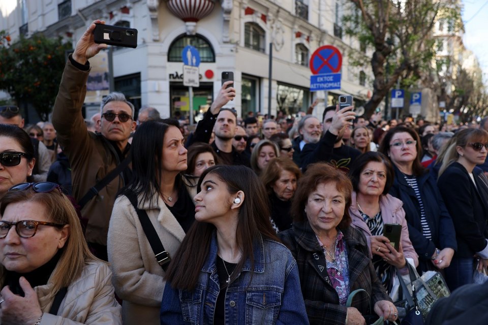 Μυροφόρες έραιναν τον Επιτάφιο με άνθη, ενώ αξιωματικοί του Ναυτικού τον μετέφεραν, συνοδευόμενοι από προσκόπους και μέλη του Ερυθρού Σταυρού. Πλήθος πιστών ακολούθησε την πομπή, με τις καμπάνες να ηχούν πένθιμα σε όλο το κέντρο.