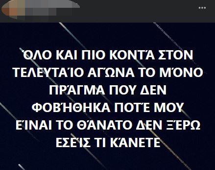 «Όλο και πιο κοντά στον τελευταίο αγώνα. Το μόνο πράγμα που δεν φοβήθηκα ποτέ μου είναι τον θάνατο. Δεν ξέρω εσείς τι κάνετε», είχε γράψει ο 42χρονος στα social media.