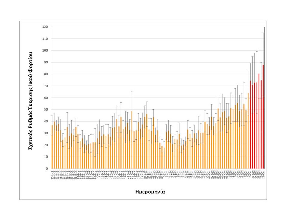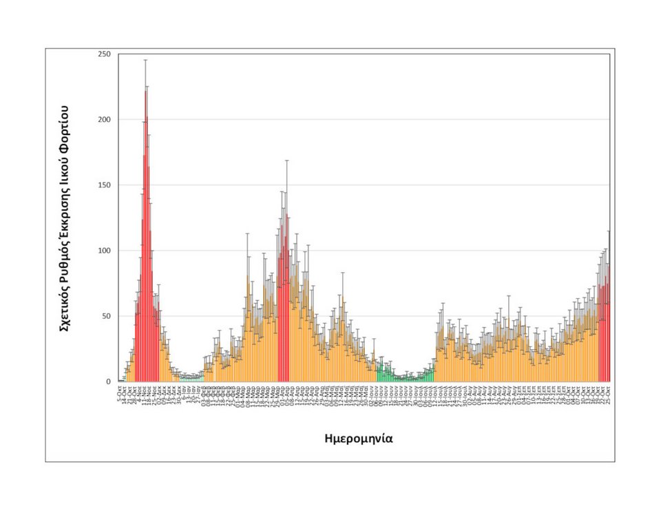 - Οριακά σταθερή (+6%) σε σχέση με τη μέση τιμή των δύο αμέσως προηγούμενων μετρήσεων του Σαββάτου 23/10 και της Κυριακής 24/10.