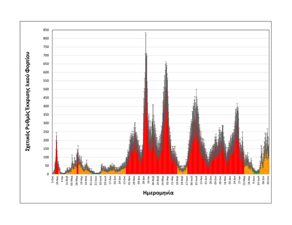 Ένα ακόμη στοιχείο που δείχνει τη σημαντική διασπορά του ιού στην κοινότητα της Θεσσαλονίκης, αλλά και την αντίστοιχη τάση πανελλαδικά, προκύπτει από τη σύγκριση της καμπύλης εξέλιξης των μετρήσεων του ιικού φορτίου στα λύματα της πόλης, με εκείνην της επιδημιολογικής επιτήρησης του ΕΟΔΥ για τις νέες εισαγωγές στα νοσοκομεία της χώρας ασθενών με λοίμωξη COVID-19.