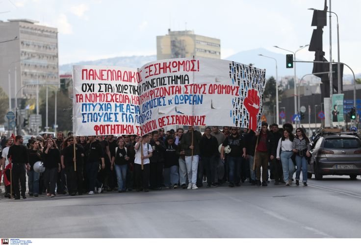 Ξεκίνησε η πορεία των φοιτητών σε κεντρικούς δρόμους της Θεσσαλονίκης, με αφορμή το νομοσχέδιο για την ίδρυση μη κρατικών Πανεπιστημίων.