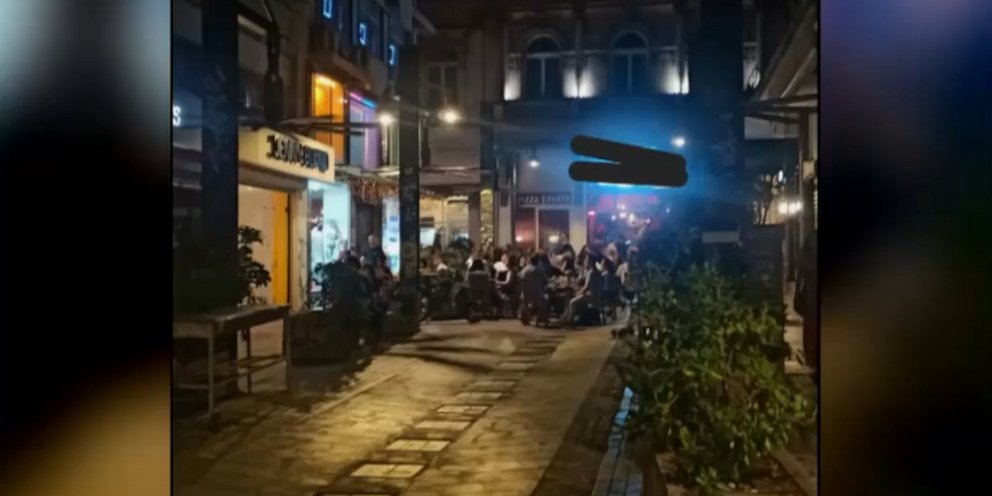 Ιδιοκτήτης καταστήματος υγειονομικού ενδιαφέροντος στα Άνω Λαδάδικα στη Θεσσαλονίκη, δεν δίστασε να βάλει τραπεζοκαθίσματα πάνω σε σιντριβάνι.