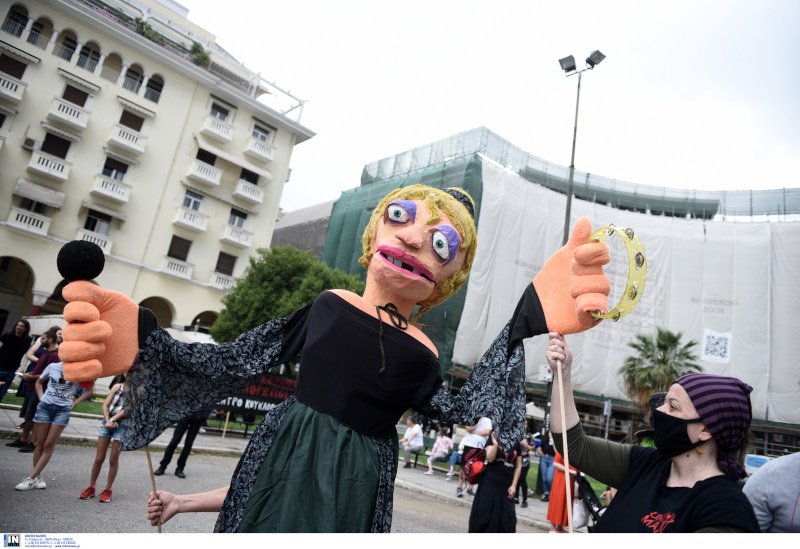 Συγκέντρωση στην πλατεία Αριστοτέλους στη Θεσσαλονίκη πραγματοποίησαν μουσικοί και άλλοι καλλιτέχνες, εργαζόμενοι σε θέαμα και ακρόαμα.