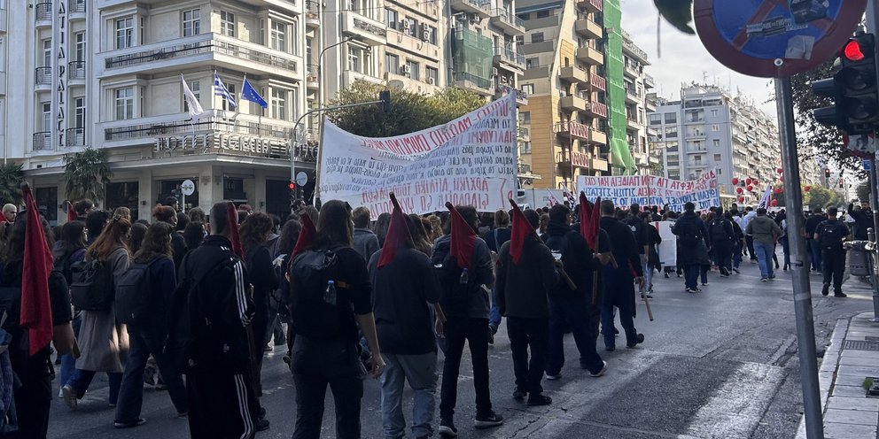 Συγκέντρωση και πορεία διαμαρτυρίας πραγματοποίησαν μαθητές και φοιτητές στο κέντρο της Θεσσαλονικης,.