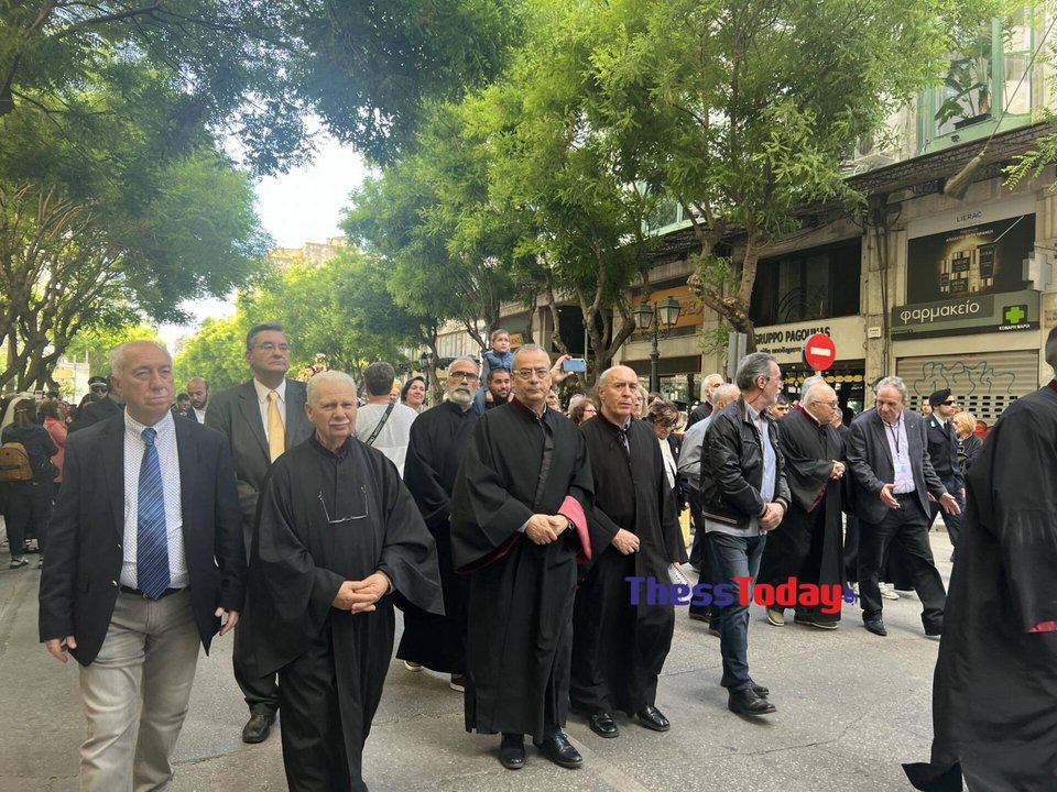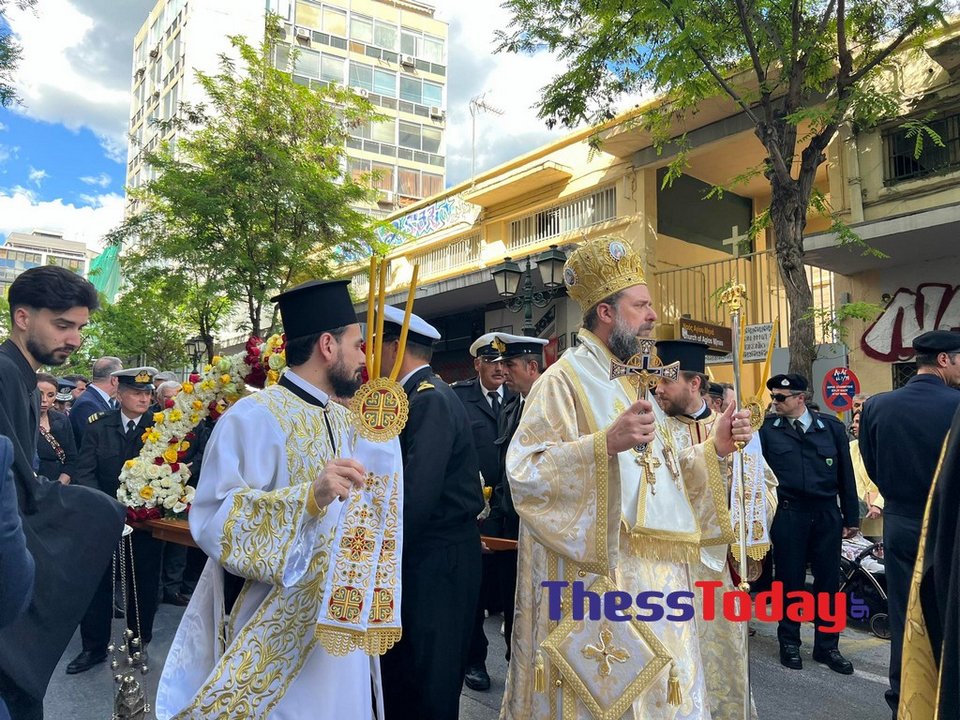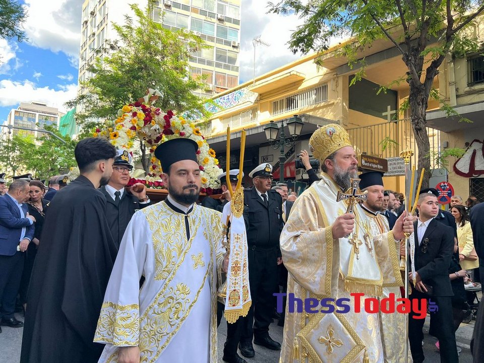 Η περιφορά ως είθισται, έγινε νωρίτερα από κάθε άλλη εκκλησία της πόλης, ώστε να την παρακολουθήσουν και οι εργαζόμενοι στα εμπορικά καταστήματα του κέντρου, τα οποία θα είναι σήμερα ανοιχτά μέχρι τις 19:00, όπως αναφέρει το thesstoday.gr.
