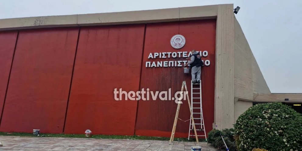 Τη βεβήλωση του προαύλιου χώρου του κτιρίου Διοίκησης του Αριστοτελείου Πανεπιστημίου Θεσσαλονίκης καταγγέλλουν οι Πρυτανικές Αρχές.