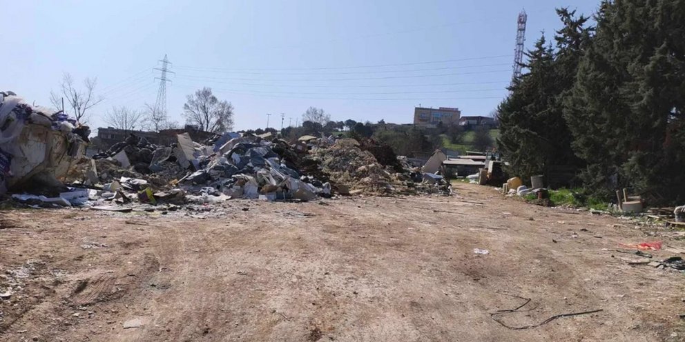 Μπάζα από εργασίες ανακαίνισης κατέληξαν ανεξέλεγκτα σε περιφραγμένο οικόπεδο, σε περιοχή του Ευόσμου Θεσσαλονίκης.