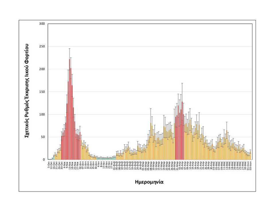 - Οριακά σταθερή (+10%)σε σχέση με τη μέση τιμή των δύο αμέσως προηγούμενων μετρήσεων της Δευτέρας 31/05 και της Τρίτης 01/06.