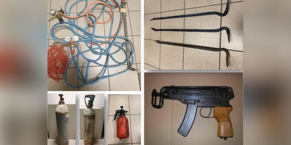 Επίσης, είχαν προμηθευτεί ειδικά εργαλεία [σφυριά, βαριοπούλες, κατσαβίδια, φακούς κεφαλής κ.λπ.], ρουχισμό [φόρμες-στολές, γάντια εργασίας, κουκούλες τύπου fullface], καθώς και ειδικό εξοπλισμό διάρρηξης που περιελάμβανε αυτοσχέδιες μεταλλικές λαβίδες, εκρηκτικές ύλες και φορείς εκρηκτικών υλών, ελάσματα, μανόμετρα, φιάλες που περιείχαν εύφλεκτο αέριο για τη μέθοδο της οξυγονοκοπής ή κοπής πλάσματος.