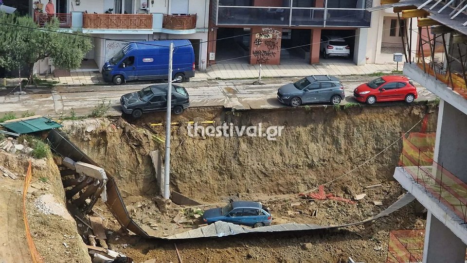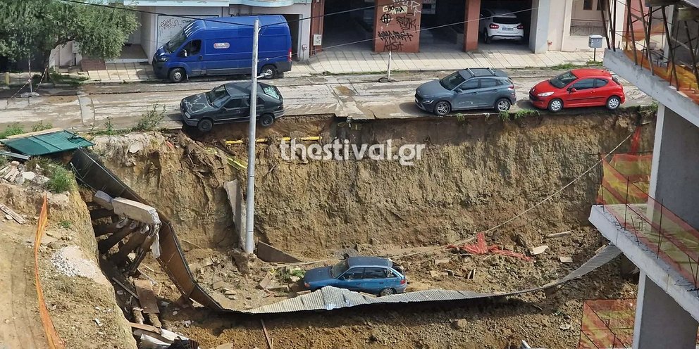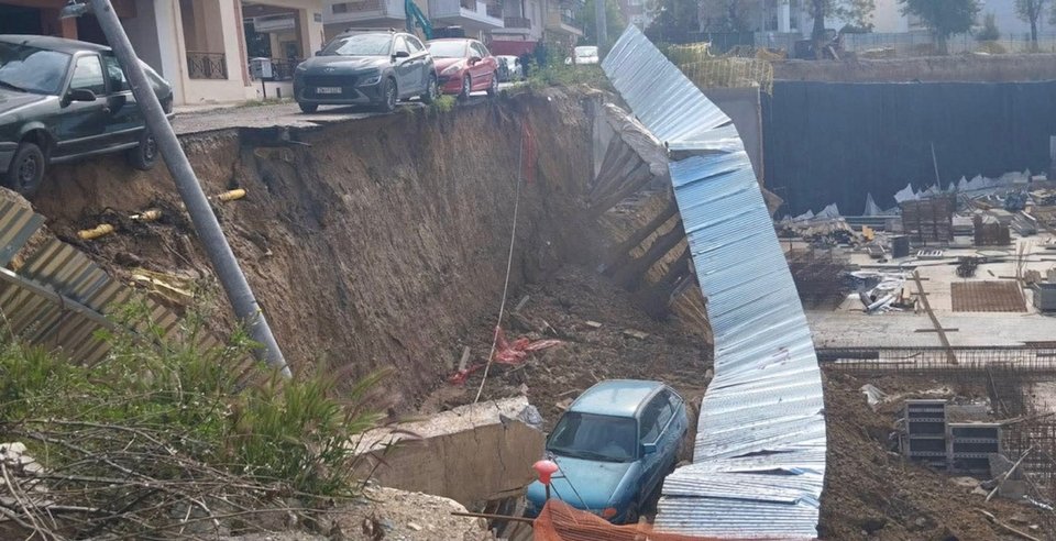 Αποτέλεσμα ήταν αυτοκίνητα που ήταν παρκαρισμένα στην περιοχή να «αιωρούνται» στην άκρη του πρανούς, ενώ ένα από αυτά έπεσε στο κενό.