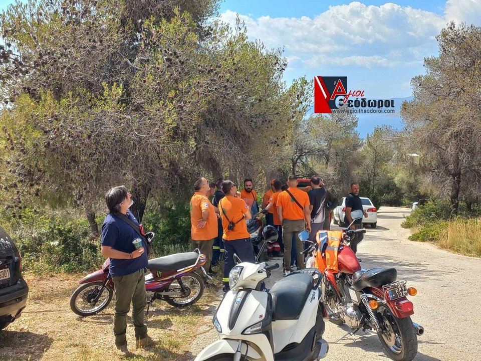 Στις έρευνες βρίσκονται ισχυρές αστυνομικές δυνάμεις, άνδρες της πυροσβεστικής, εθελοντές της δασοπροστασίας Αγίων Θεοδώρων, εκπαιδευμένος σκύλος Κ19, και drone της αστυνομίας για τον εντοπισμό του 61χρονου.