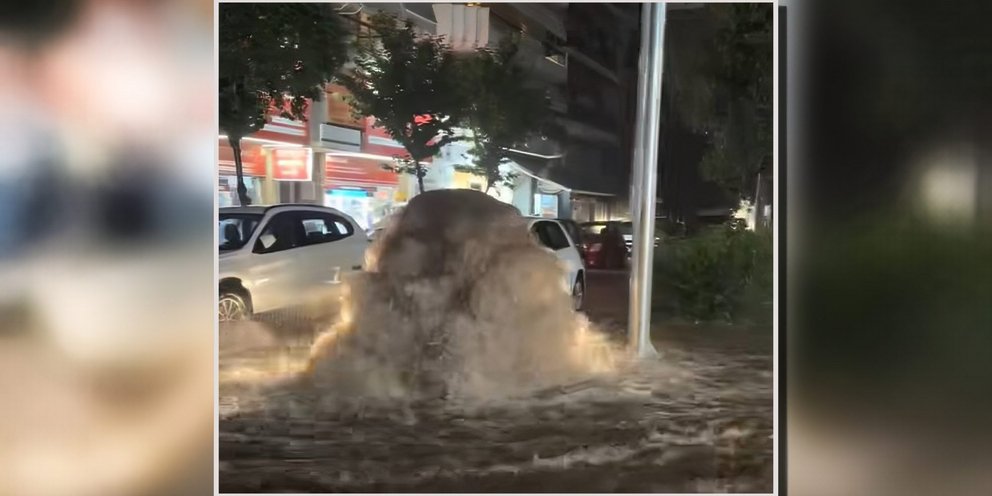 Ανάμεσα στα προβλήματα που προέκυψαν σε διάφορες περιοχές του Λεκανοπεδίου από την κακοκαιρία Byron, ήταν και η υπερχείλιση αγωγού σε κεντρικό δρόμο της Καλλιθέας, η οποία μάλιστα μετέτρεψε τον δρόμο σε... «σιντριβάνι».