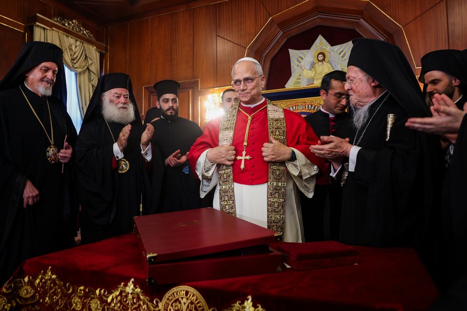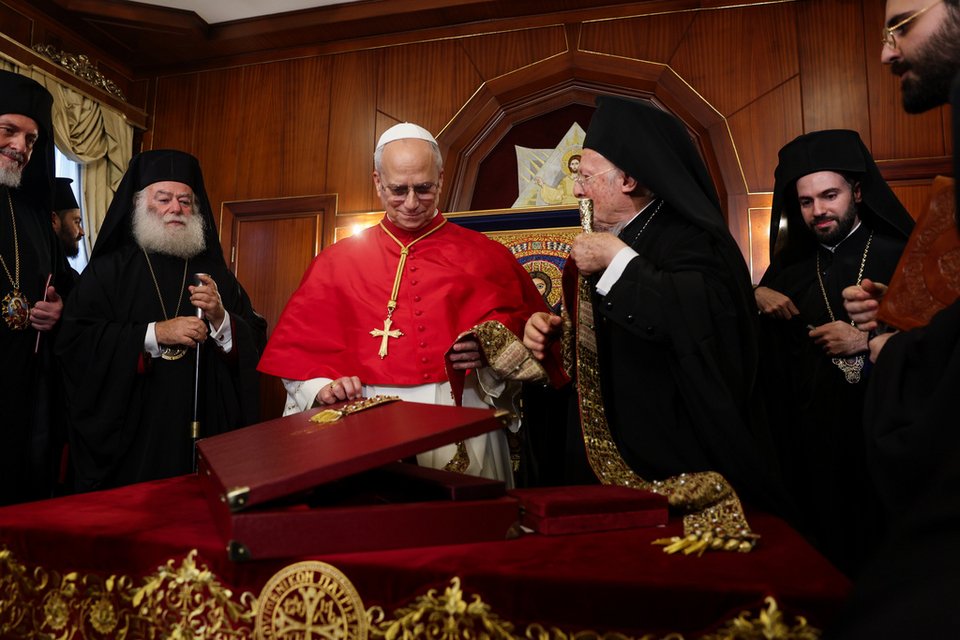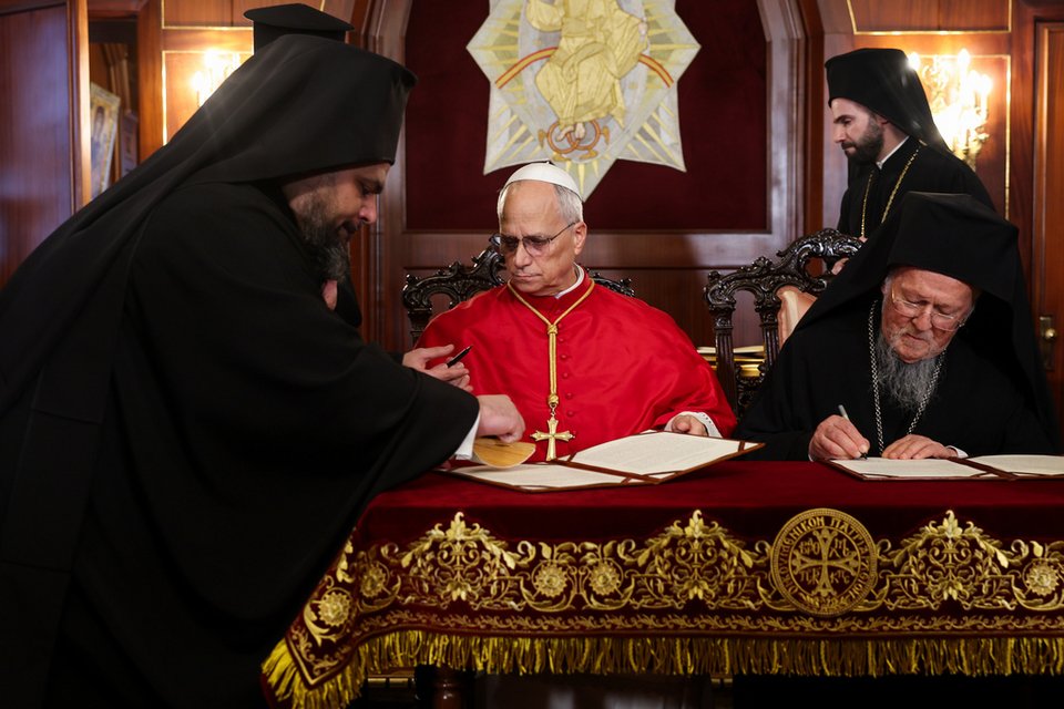 «Κατά την προτεραία της εορτής του Αγίου Ανδρέα του Πρωτοκλήτου Αποστόλου, αδελφού του Αποστόλου Πέτρου και προστάτη του Οικουμενικού Πατριαρχείου, ημείς, ο Πάπας Λέων ΙΔ΄ και ο Οικουμενικός Πατριάρχης κ. Βαρθολομαίος, αναπέμπουμε ολοκάρδιες ευχαριστίες στο Θεό, τον ελεήμονα Πατέρα μας, για τη δωρεά της αδελφικής αυτής συνάντησης.