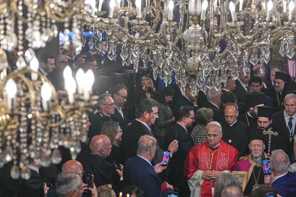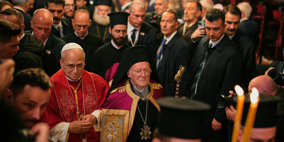 Ιστορικές στιγμές στο Φανάρι όπου κατά τη συναντησή τους σήμερα ο Πάπας Λέων και ο Πατριάρχης Βαρθολομαίος υπέγραψαν κοινή διακήρυξη.