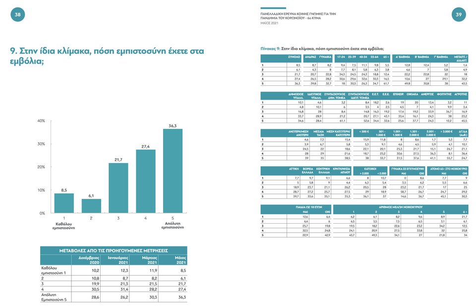 Γενικά, πρόκειται για μια εντελώς διαφορετική εικόνα από τον Σεπτέμβριο του 2020, όταν μόνο το 49,5% των Ελλήνων δήλωναν ότι σκοπεύουν να εμβολιαστούν κατά του νέου κορωνοϊού, όταν γίνουν διαθέσιμα τα εμβόλια.