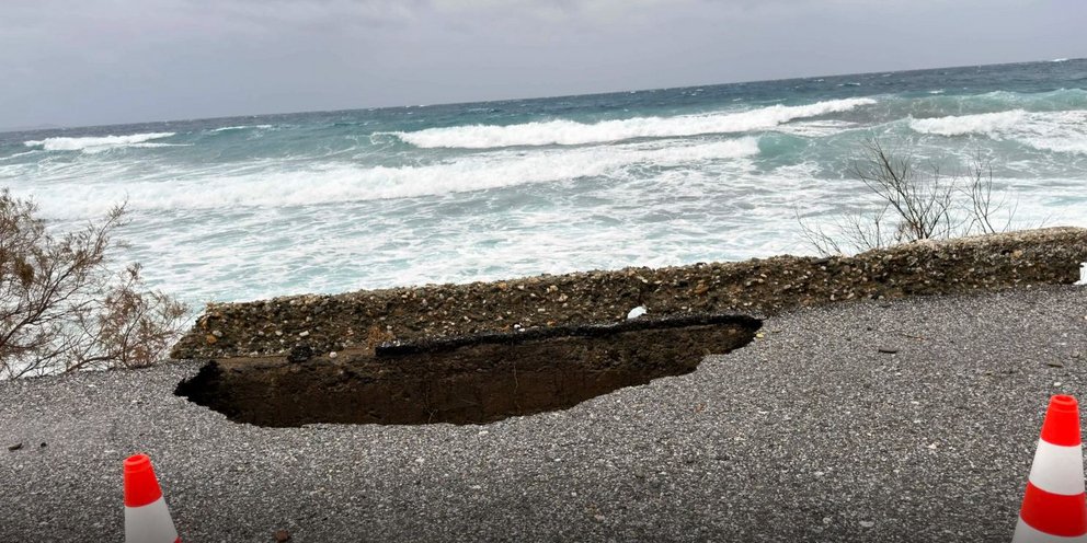 Παράλληλα, καθίζηση υπέστη τμήμα του δρόμου απέναντι από το εστιατόριο «Σαν το Αλάτι», όπου οι φθορές στο οδόστρωμα είναι εμφανείς και η διέλευση των οχημάτων απαιτεί χαμηλές ταχύτητες και αυξημένη επαγρύπνηση.