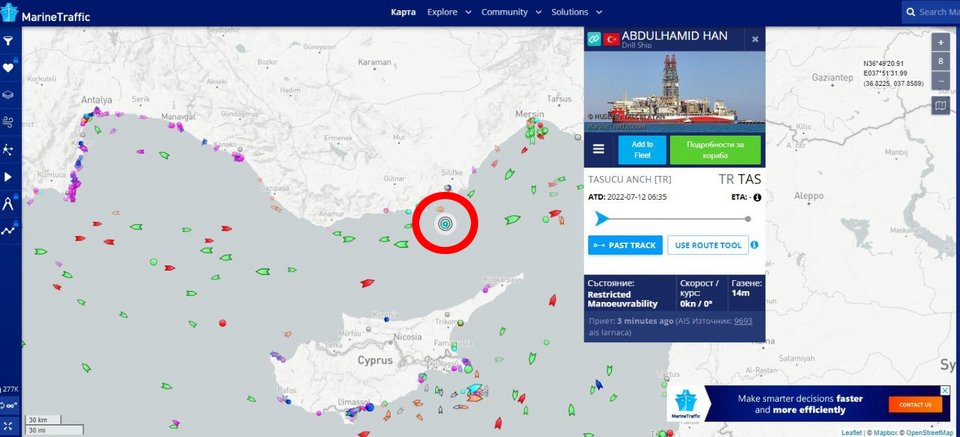 Κυπριακά ΜΜΕ, επικαλούμενα τουρκικές πηγές, μεταδίδουν ότι μία από τις κινήσεις που εξετάζει η Άγκυρα είναι να πραγματοποιήσει την πρώτη της γεώτρηση εκτός της κυπριακής ΑΟΖ, πιθανότατα στον κόλπο της Αττάλειας. Όπως αναφέρουν οι ίδιες πηγές, η δεύτερη πιθανότητα είναι να σταλεί περίπου 60 χιλιόμετρα βορειοδυτικά της Πάφου, ανοιχτά της χερσονήσου του Ακάμα.