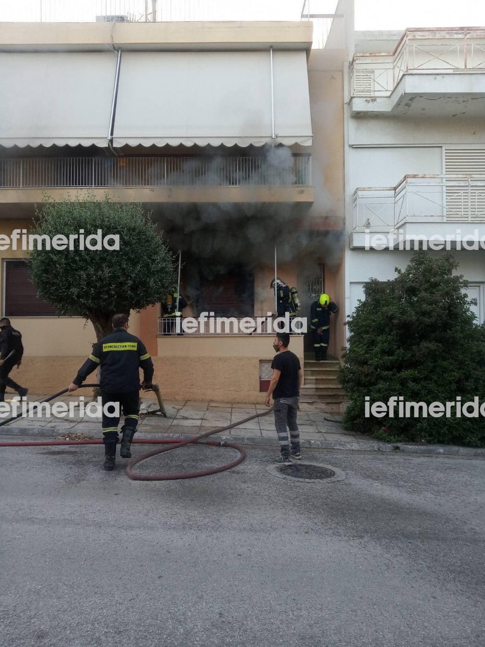 Η πυροσβεστική κλήθηκε στις 06:00 το πρωί της Κυριακής για φωτιά σε ισόγειο διαμέρισμα στην οδό Πριάμου.