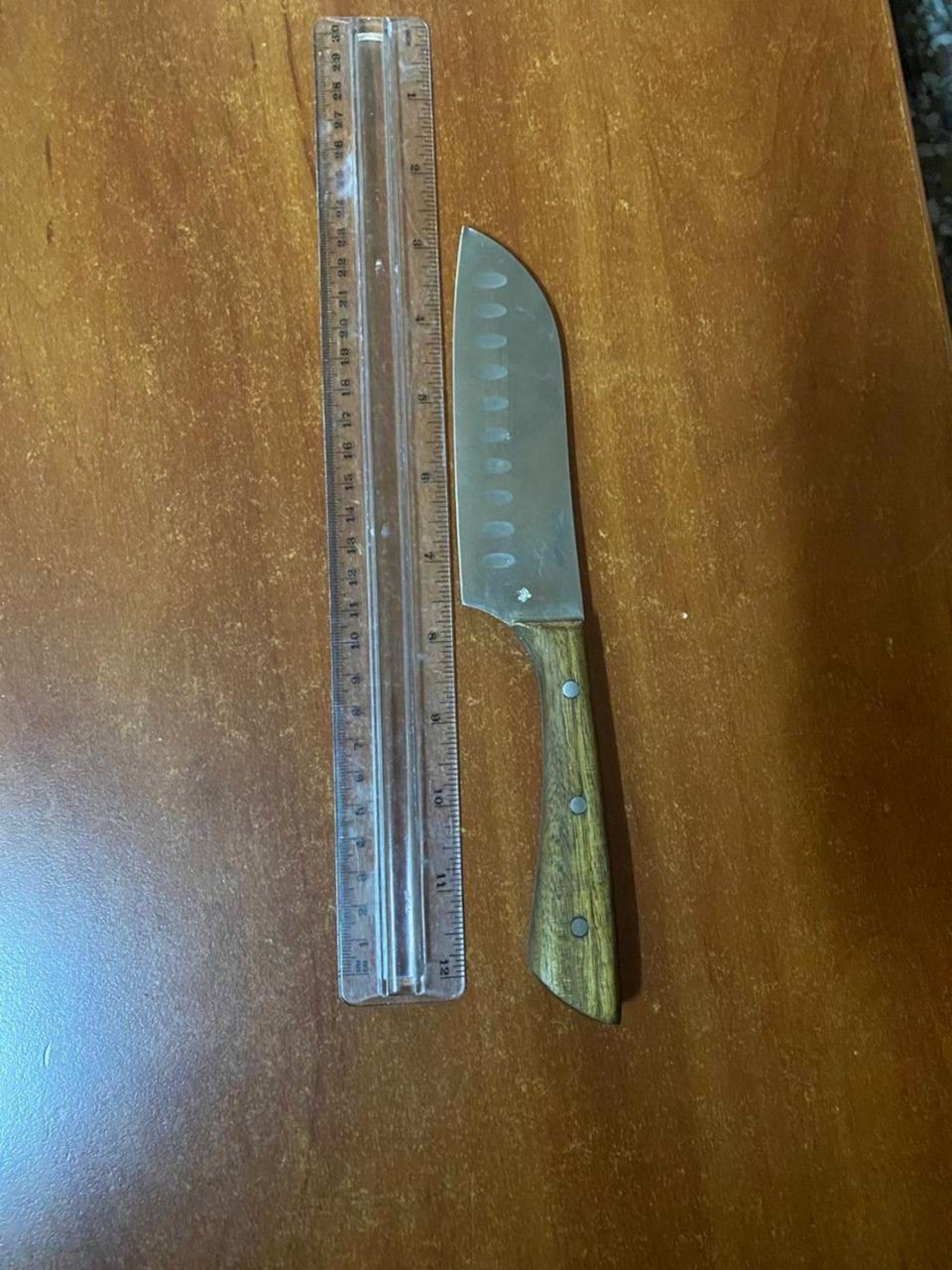 Όπως διαπιστώθηκε, μέσα στο τσαντάκι είχε ένα μαχαίρι 23 εκατοστών. Κατά την εξακρίβωση, ενημερώθηκαν ότι πρόκειται για πολύ γνωστό τράπερ.