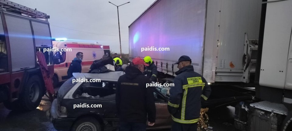 Σύμφωνα με το onlarisa, ένα ΙΧ αυτοκίνητο συγκρούστηκε με σφοδρότητα με ένα φορτηγό, κάτω από αδιευκρίνιστες ως στιγμής συνθήκες.