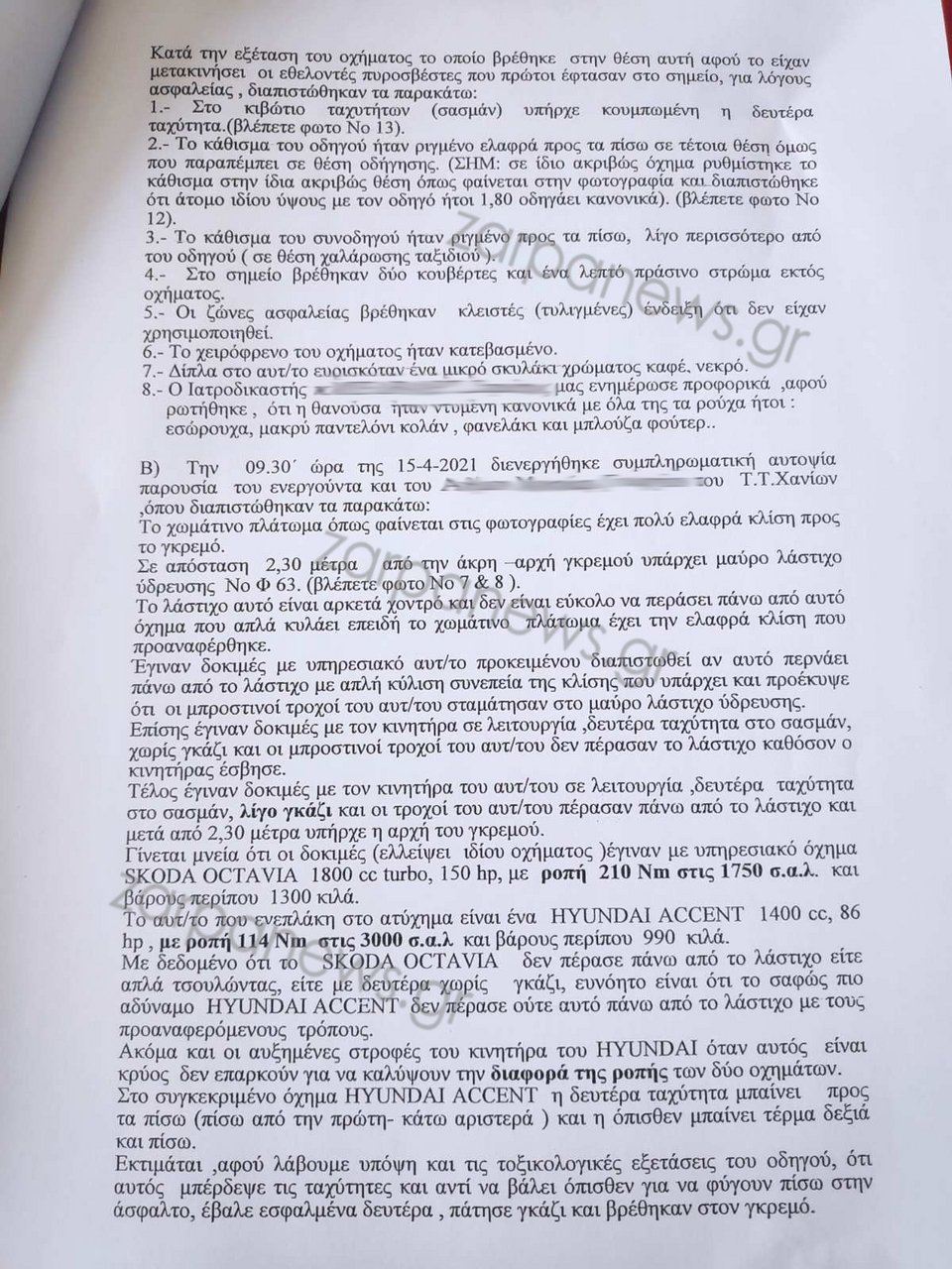Η ιστοσελίδα Zarpa News εξασφάλισε και παρουσιάζει την έκθεση της αστυνομίας για το θανατηφόρο συμβάν, με τους αστυνομικούς να δοκιμάζουν στην πράξη την εκδοχή του 40χρονου οδηγού που επιβίωσε της πτώσης, καταρρίπτοντας ουσιαστικά το ενδεχόμενο του λυμένου χειρόφρενου.