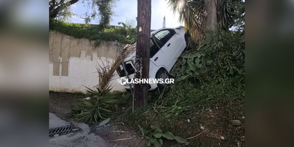 Ένα ενοικιαζόμενο αυτοκίνητο έπεσε από ύψος στον δρόμο στην έξοδο του κόμβου Μουρνιών, με τον οδηγό να γλιτώνει από θαύμα.