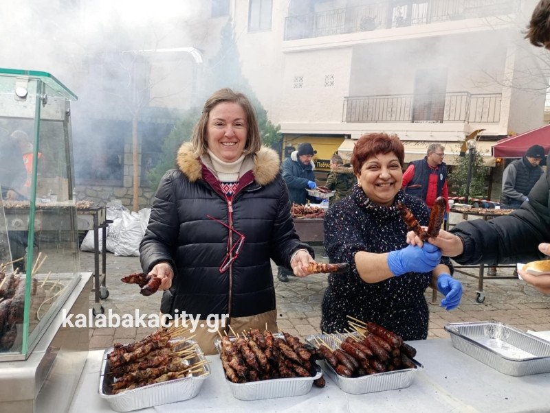 Με 10.000 σουβλάκια και λουκάνικα ο Δήμος Μετεώρων τσικνίζει ανήμερα της Τσικνοπέμπτης στην Καλαμπάκα και όλοι οι κεντρικοί δρόμοι έχουν γίνει μια μεγάλη ψησταριά.