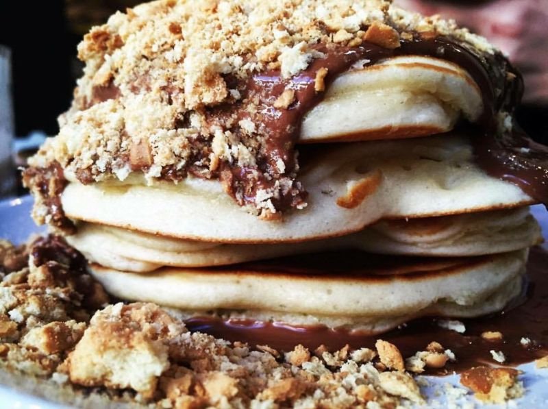 Κλείνουμε κλασικά με γλυκό pancake: Εμείς διαλέγουμε banoffee pancakes, με καραμέλα βουτύρου, μπισκότο Oreo, κρέμα μπανάνας & κομμάτια φρέσκιας μπανάνας.