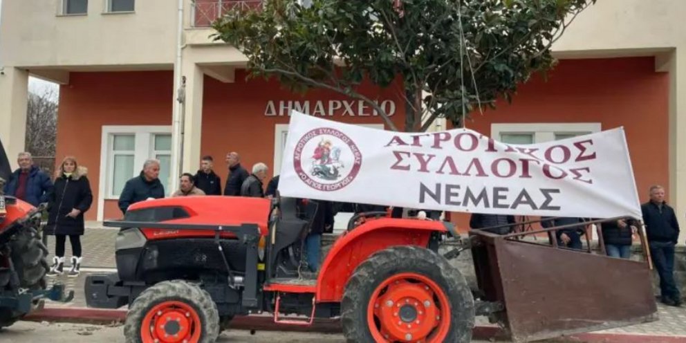 Στο Δημαρχείο της Νεμέας συγκεντρώθηκαν οι αγρότες της περιοχής, καθώς βγήκαν με τα τρακτέρ στους δρόμους για να διεκδικήσουν τα αιτήματά τους.