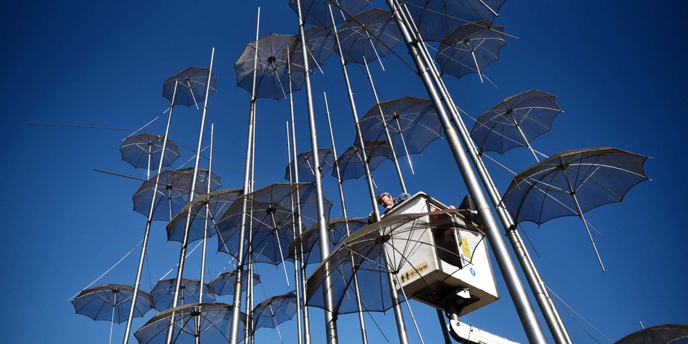 «Ξηλώνονται» για να επισκευαστούν δεκατρείς από τις «Ομπρέλες» του διάσημου, αγαπημένου και πολυφωτογραφημένου γλυπτού του Γιώργου Ζογγολόπουλου, που βρίσκεται στη Νέα Παραλία της Θεσσαλονίκης.