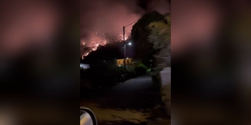 Όπως θα δείτε σε ένα συγκλονιστικό βίντεο λίγων δευτερολέπτων (στα οποία αποτυπώνεται η κόλαση που επικρατεί στην περιοχή) λίγο έξω από το Δερβένι Κορινθίας, ολόκληρη η πλαγιά έχει τυλιχθεί στις φλόγες, μια ανάσα από σπίτια και επιχειρήσεις.