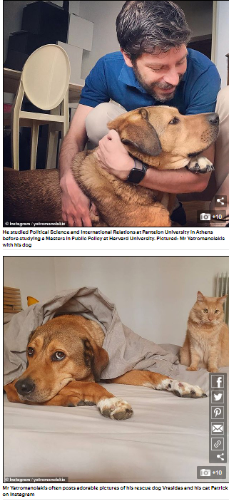 H «Daily Mail», που φιλοξενεί ακόμη και φωτογραφία του Νικόλα Γιατρομανωλάκη με τον σκύλο του, τον Βρασίδα, και τη γάτα του, τον Πάτρικ, εστιάζει στον τίτλο στο γεγονός ότι ο νέος υφυπουργός Σύγχρονου Πολιτισμού είναι ανοιχτά ομοφυλόφιλος, έχει σπουδές στο Harvard και είναι 44 ετών.